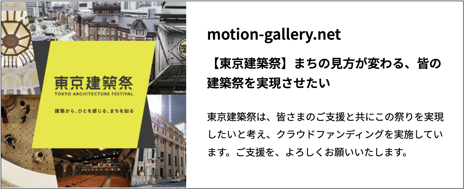 みなさんのご支援で、無料公開など、誰でもで楽しめる建築祭が実現します。