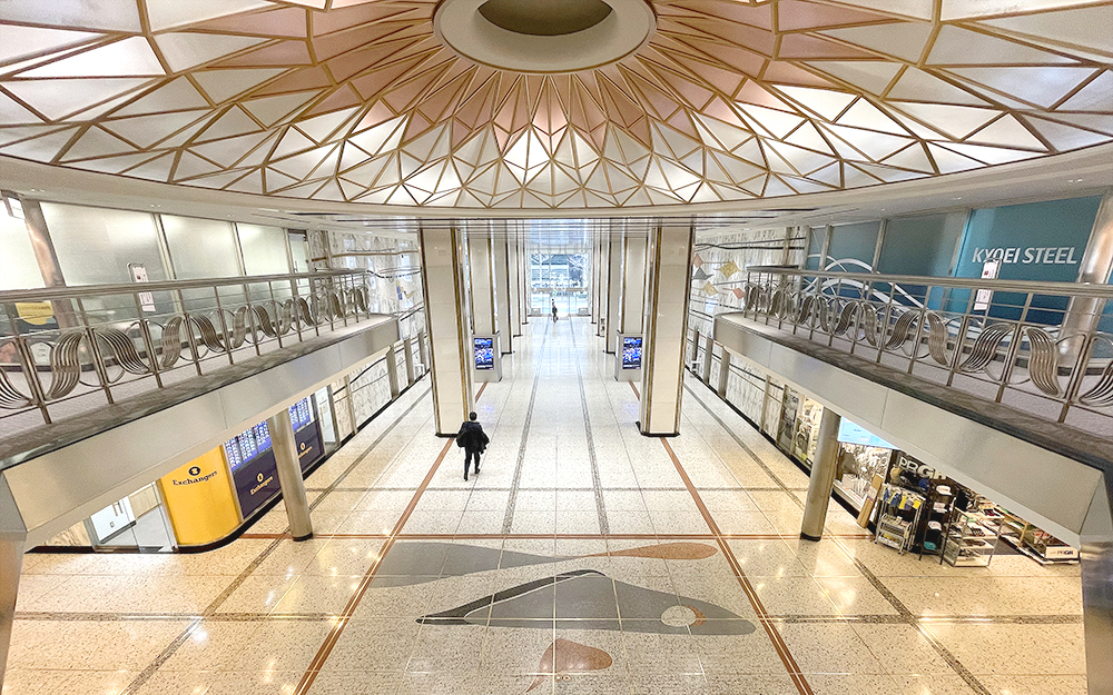 1960年代に丸の内で誕生した新たなビル群。その先鞭をつけたのが「新東京ビルヂング」です。外観は横一列のシャープなガラス窓。内部には周辺の碁盤の目状の街路を引き込むような共用通路があります。おおらかな空間の中で輝くのは、矢橋六郎作のモザイク画「彩雲流れ」や幾何学的な照明器具。東京建築祭に合わせて、完成時の写真や図面が特別展示されます。このビルがたたえている高度成長期ならではの機能性と装飾性との融合に、ぜひご注目ください。
