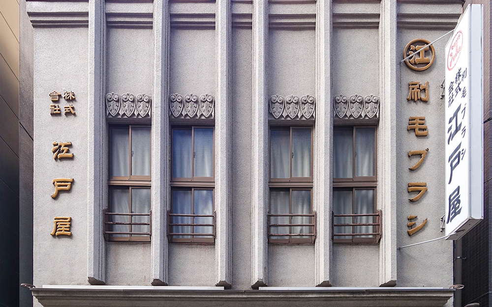 享保創業の老舗とアールデコが出会う「江戸屋」が特別公開。将軍家お抱えの刷毛師として、旧奥州・日光街道に当たる大伝馬本町通りに店を構えてきた老舗が、大正期に建てたオリジナリティあふれる看板建築です。軒先から突き出た6本のラインが、刷毛をモダンに表現。職人技を生かした自由な発想の建物が、関東大震災後の復興を支えました。そのことが分かる貴重な一作。イロハ式のダイヤル鍵がついた金庫なども拝見できます。さまざまな出来事を乗り越え、現在まで続く歴史が実感されます。